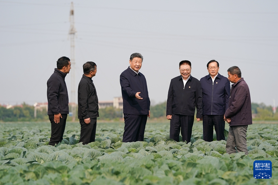 11月4日至6日,中共中央總書記、國(guó)家主席、中央軍委主席習(xí)近平在湖北考察。這是5日上午,習(xí)近平在咸寧市嘉魚縣潘家灣鎮(zhèn)十里蔬菜長(zhǎng)廊考察時(shí),同菜農(nóng)親切交流。新華社記者 燕雁 攝