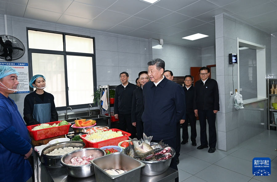 11月4日至6日,中共中央總書記、國(guó)家主席、中央軍委主席習(xí)近平在湖北考察。這是5日上午,習(xí)近平在咸寧市嘉魚縣潘家灣鎮(zhèn)四邑村養(yǎng)老服務(wù)驛站食堂考察。新華社記者 謝環(huán)馳 攝